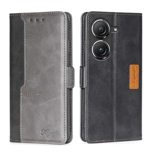 Funda de Cuero para Asus Zenfone 9 con Hebilla Lateral y Contraste (Negro + Gris)