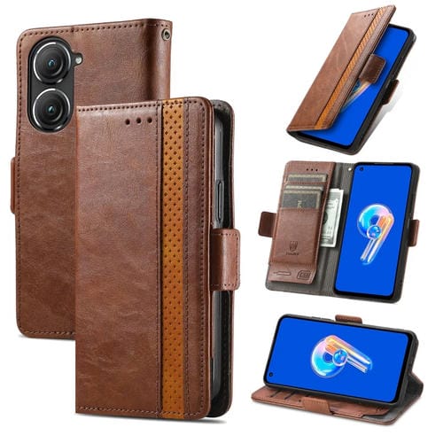 Funda de Cuero Caseneo Splicing Dual Magnetic Hebilla para Asus Zenfone 9 (Marrón)
