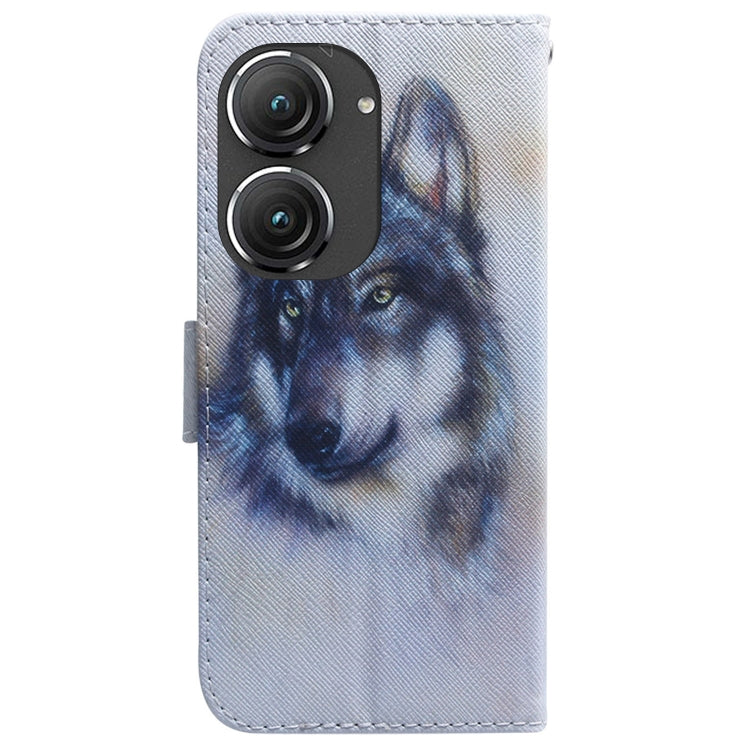 Estuche de Cuero para Asus Zenfone 9 con Dibujo Coloreado (Lobo Blanco)