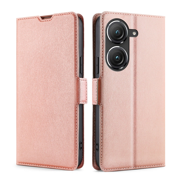 Estuche para Asus Zenfone 9 de Cuero con Tapa Horizontal y Hebilla Lateral Ultrafino (Oro Rosa)