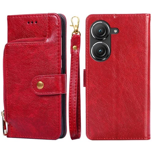 Funda de Cuero con Cremallera para Asus Zenfone 9 Teléfono (Rojo)
