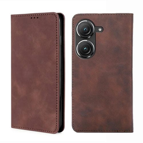 Funda para Asus Zenfone 9 Skin Feel Flip Horizontal Magnética de Cuero (Marrón Oscuro)