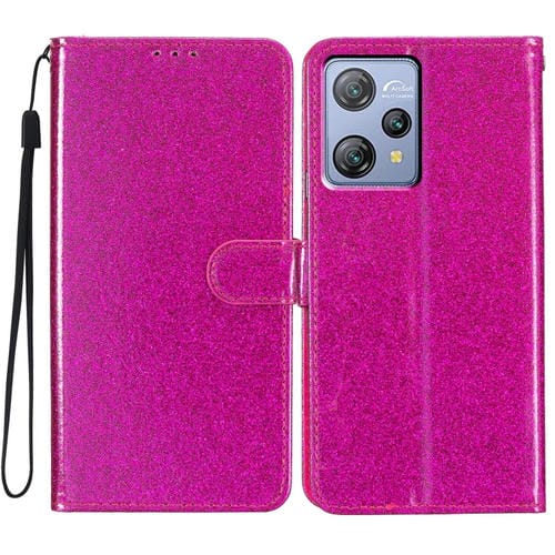Funda de Cuero Glitter Powder Flip para BlackView A53 Pro (Rojo Rosa)