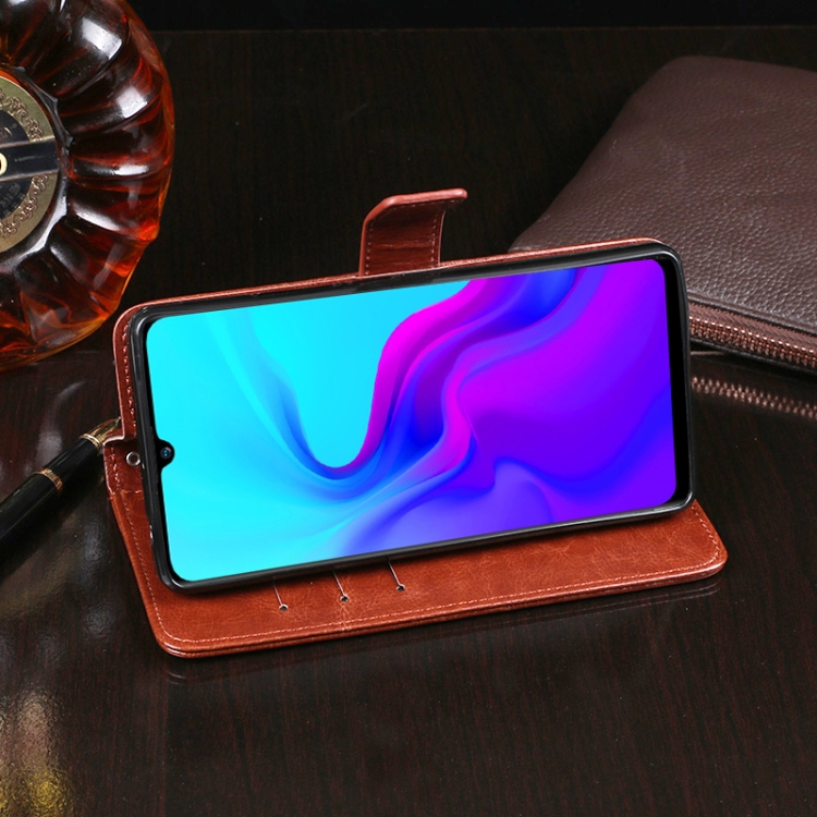 Funda de Cuero Idewei Crazy Horse para BlackView A80 con Tapa Horizontal, Soporte y Ranuras para Tarjetas (Marrón)