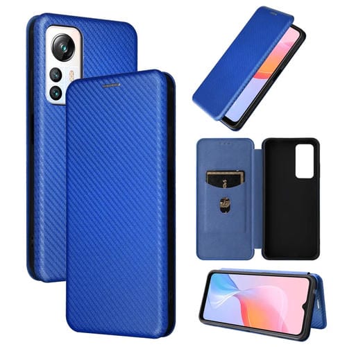 Funda de Cuero para BlackView A85 con Tapa Textura de Fibra de Carbono (Azul)