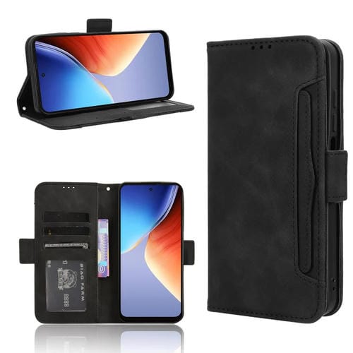 Funda de Cuero para BlackView A96 con Textura Skin Feel y Ranuras para Tarjetas (Negro)