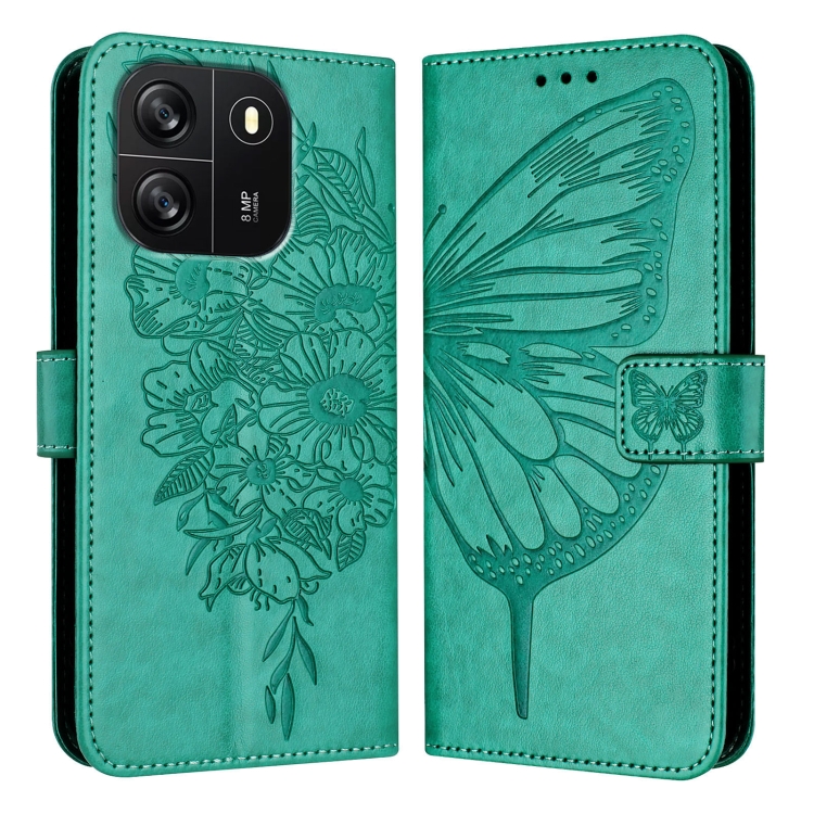 Funda de Cuero para BlackView Wave 6C con Mariposa en Relieve (Verde)