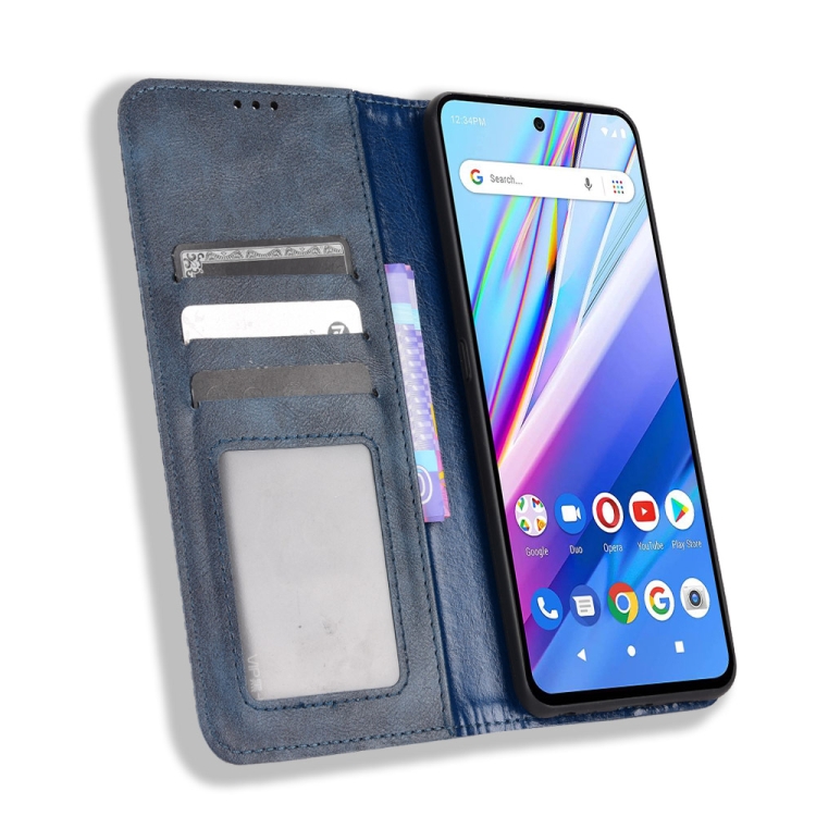 Funda para Blu G91 Pro con Hebilla Magnética y Textura Retro de Cuero (Azul)