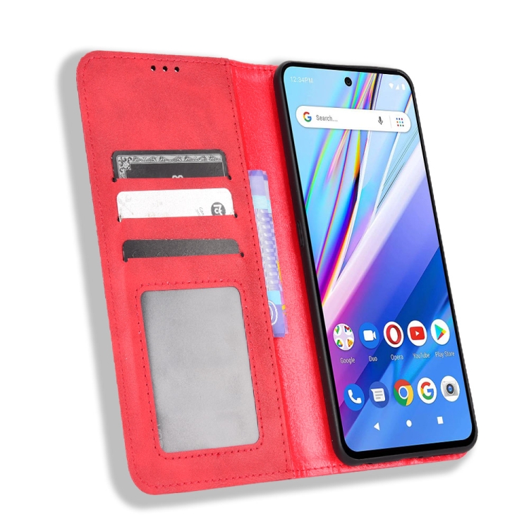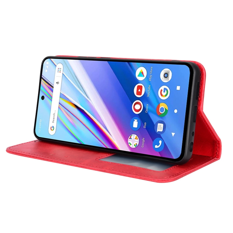 Funda para Blu G91 Pro Magnética con Hebilla Retro y Textura de Cuero (Rojo)