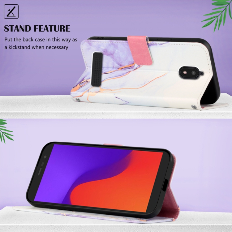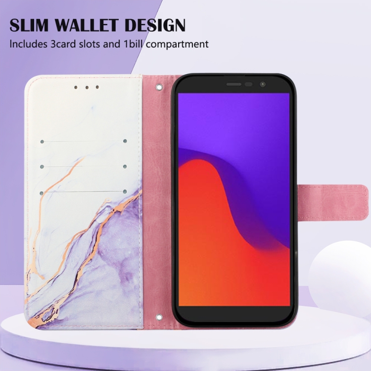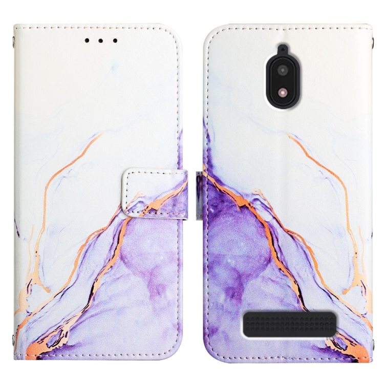 Funda para Blu View 2 (2020/2022) Pt003 con Tapa de Cuero y Patrón Mármol (Blanco Púrpura)