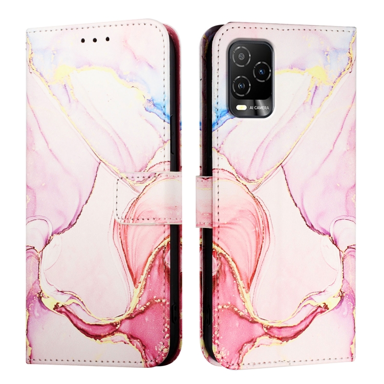 Funda de Cuero para BLU View 5 Pro Pt003 con Tapa y Patrón de Mármol (Oro Rosa)