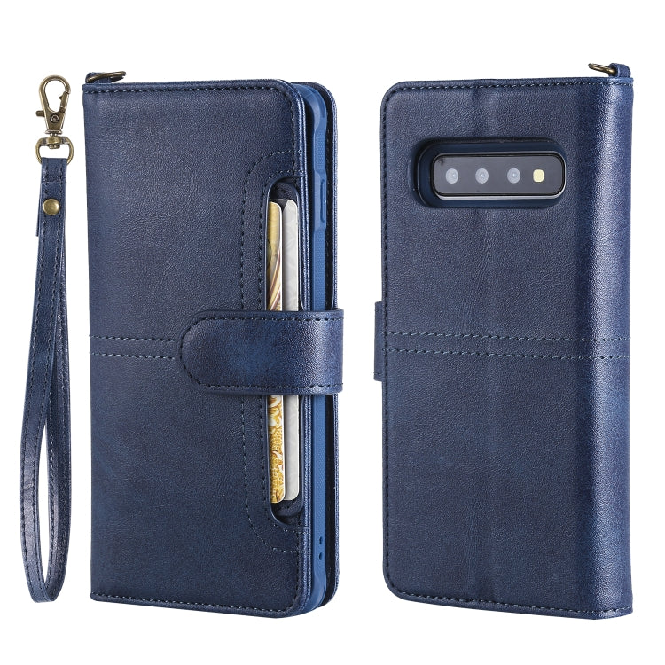 Estuche de Cuero Galaxy S10 con Tapa Horizontal Magnética Desmontable Multifuncional (Azul)