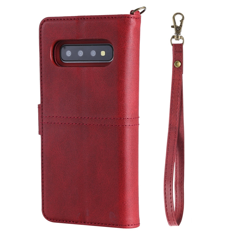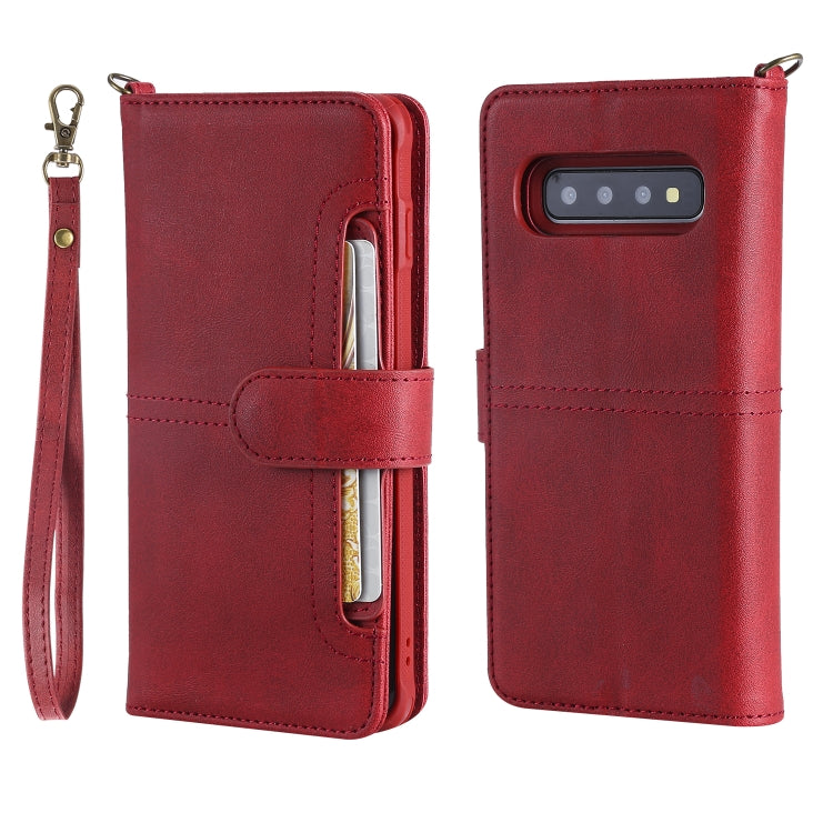 Estuche de Cuero Galaxy S10 Tapa Horizontal Magnética Desmontable Multifuncional (Rojo)