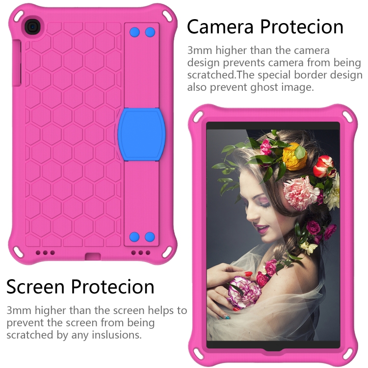 Carcasa Protectora para Galaxytab A 10.1 (2019) T510 Diseño de Panal Eva + PC Anticaída con Correas (Rosa Rojo + Azul)