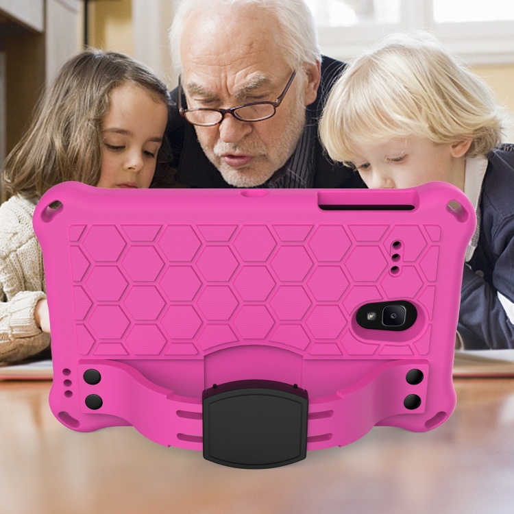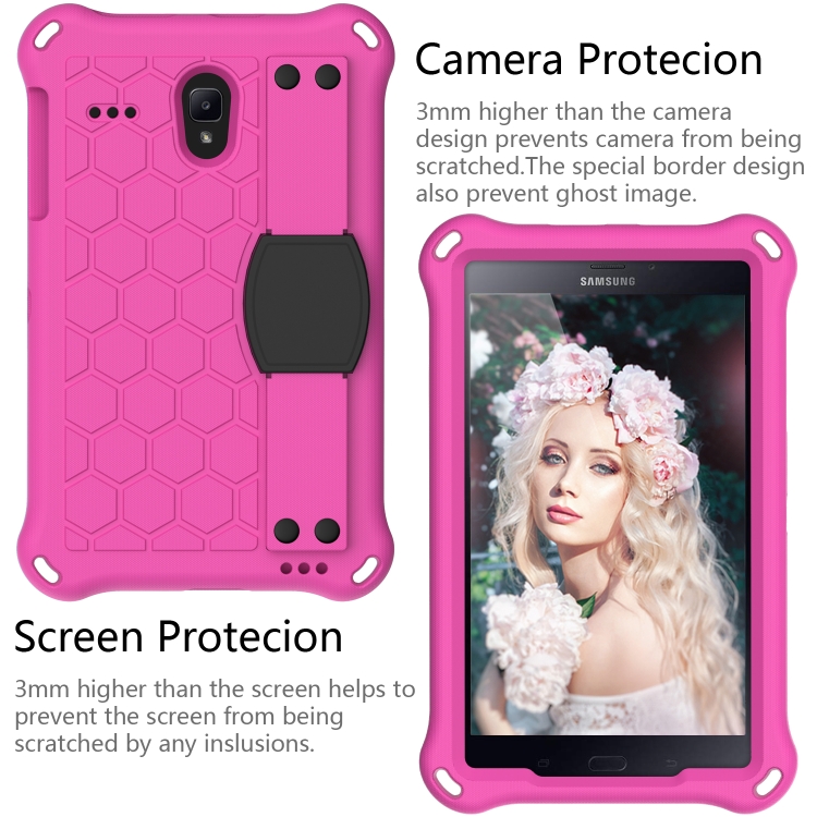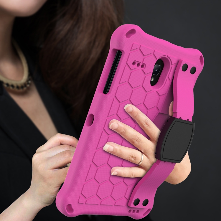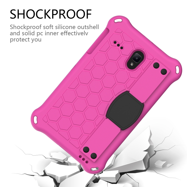 Carcasa protectora para Galaxytab A 8.0 (2017) T380 diseño panal de abeja Eva + Pc anticaída con correas (Rosa Roja + Negro)