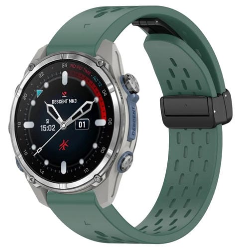 Correa de Silicona para Garmin Descent Mk3 43mm 20mm con Hebilla Plegable Magnética (Verde Oscuro)