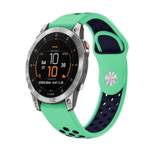 Correa de Reloj para Garmin Epix Gen 2 22mm Silicona Transpirable Deportiva (Verde Menta + Azul Medianoche)