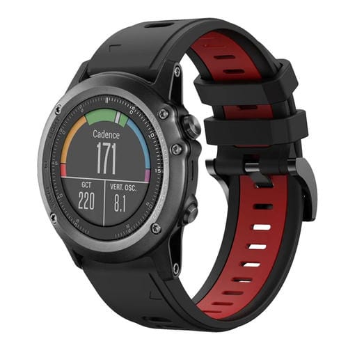 Banda de Reloj Silicona Deportiva para Garmin Fenix 3 Hr 26mm (Negro + Rojo)