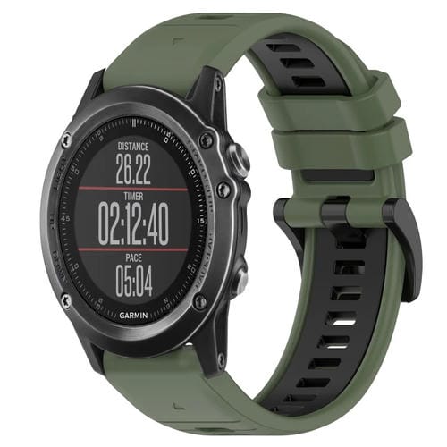 Correa de Silicona Dos Colores para Garmin Fenix 3 Hr 26mm (Verde Oliva + Negro)