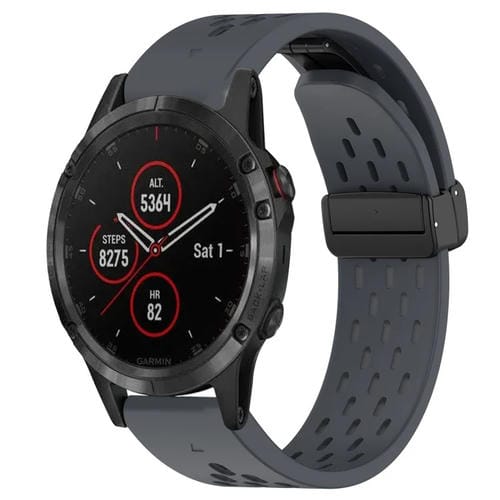 Correa de Silicona para Garmin Fenix 5 con Orificio y Hebilla Plegable 22mm (Gris Oscuro)