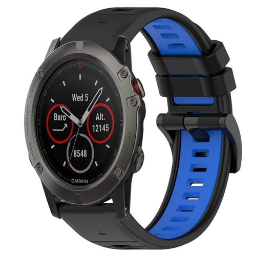 Correa de Silicona para Garmin Fenix 5X Sapphire 26mm Sports Dos Colores (Negro + Azul)