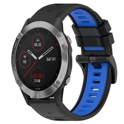 Correa silicona deportiva para Garmin Fenix 6 GPS 22mm bicolor (Negro + Azul)
