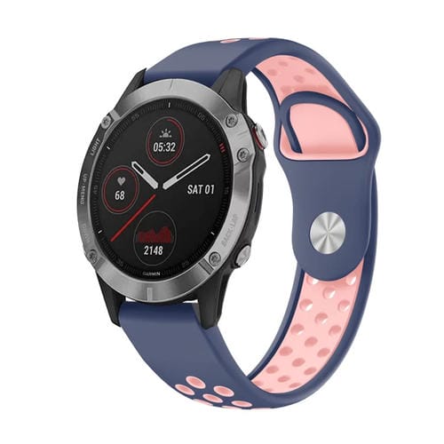 Banda de Reloj de Silicona para Garmin Fenix 6 GPS 22mm Sports (Azul Medianoche + Rosa)