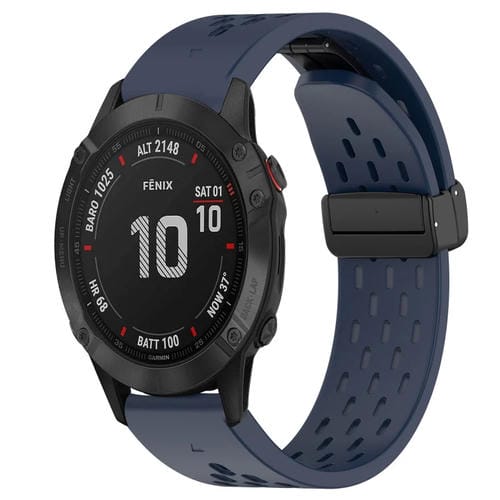 Correa de Silicona para Garmin Fenix 6 Pro GPS con Orificio y Hebilla Plegable de 22mm (Azul Medianoche)
