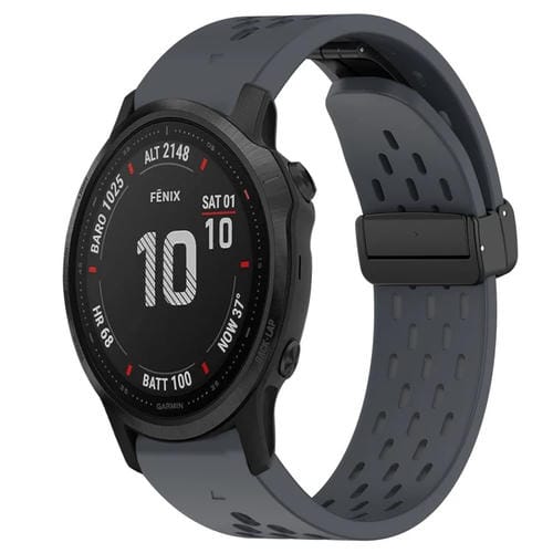 Correa de Silicona para Garmin Fenix 6S con Orificio y Hebilla Plegable 20mm (Gris Oscuro)