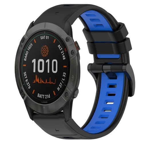 Correa silicona deportiva Garmin Fenix 6X Pro 26mm dos colores (Negro + Azul)