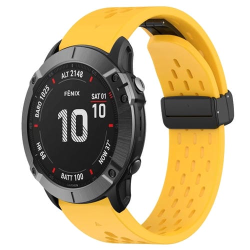 Correa de Reloj Silicona Garmin Fenix 6X Pro con Orificio y Hebilla Plegable 26mm (Amarillo)
