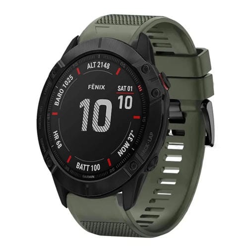 Correa de Silicona para Garmin Fenix 6X Sapphire 26mm Liberación Rápida (Verde Militar)