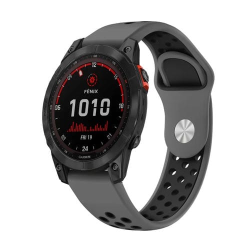 Banda de Reloj de Silicona para Garmin Fenix 7 Solar 22mm Sports (Gris + Negro)