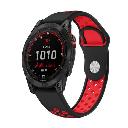 Banda de Reloj para Garmin Fenix 7 Solar 22mm silicona transpirable (Negro + Rojo)