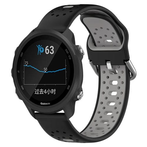 Banda de Reloj para Garmin Forerunner 245 20mm Silicona Transpirable Dos Colores (Negro + Gris)