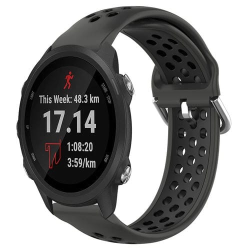 Banda de Reloj Deportiva para Garmin Forerunner 245 Music 20mm Silicona Transpirable Perforada (Negro)
