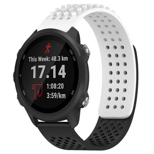 Correa de Reloj para Garmin Forerunner 245 Music Silicona Transpirable 20mm (Blanco + Negro)