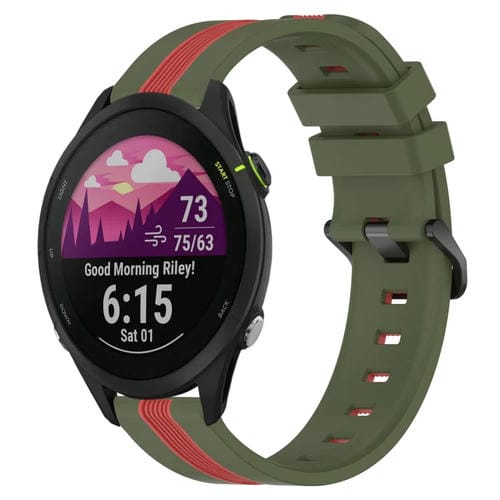 Banda de Reloj Garmin Forerunner 255 Music 22mm Silicona Dos Colores Vertical (Verde Militar + Rojo)