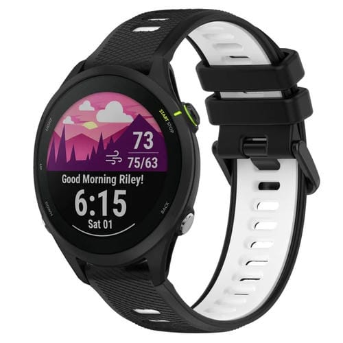 Correa de silicona 22mm para Garmin Forerunner 255 Music deportiva bicolor (Negro + Blanco)