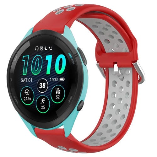 Banda de Reloj Silicona Deportiva para Garmin Forerunner 265 Music 22mm Transpirable (Rojo + Gris)