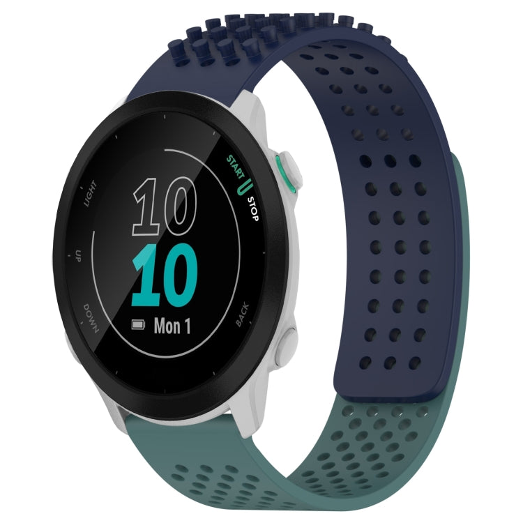 Correa de Reloj de Silicona para Garmin Forerunner 55 con Puntos 3D Transpirables y Orificios 20mm (Azul Medianoche + Verde Oliva)