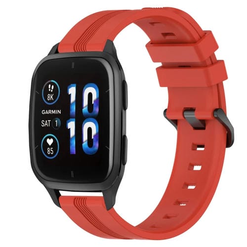 Banda de Reloj de Silicona para Garmin Forerunner Sq2 Music 20mm Cóncava a Rayas (Rojo)