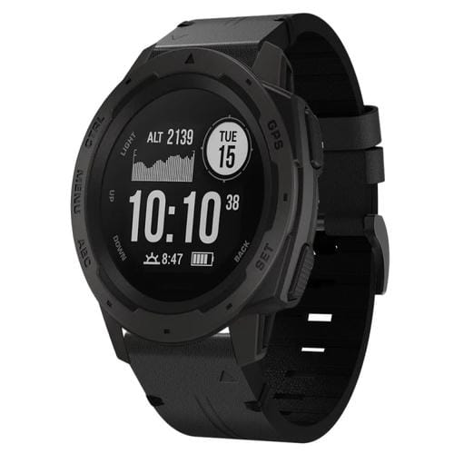 Correa de Reloj para Garmin Instinct con Hebilla de Acero y Cuero 22mm (Negro)