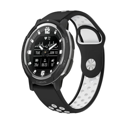Banda de Reloj para Garmin Instinct Crossover 22mm Sports Silicona Transpirable (Negro + Blanco)