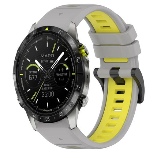 Correa para Garmin Marq Athlete Gen 2 22mm Silicona Deportiva Dos Colores (Gris + Amarillo)
