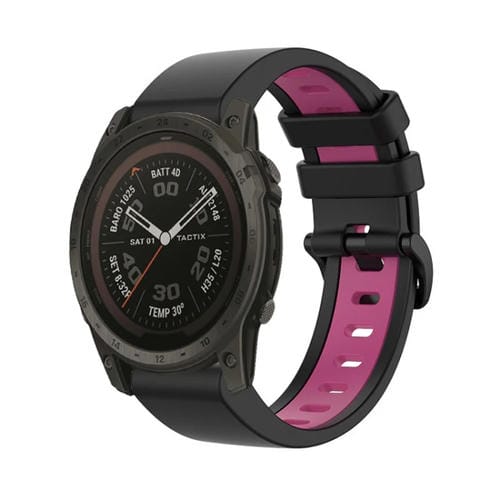 Banda Deportiva de Silicona para Garmin Tactix 7 Pro 26mm (Negro+Rosa)