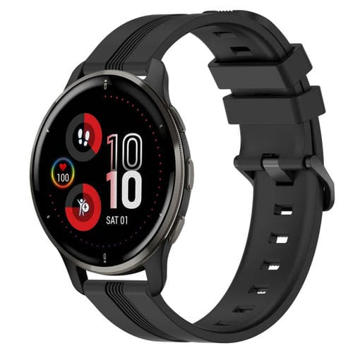 Banda de Reloj para Garmin Venu 2 Plus 20mm Silicona con Rayas Cóncavas (Negro)