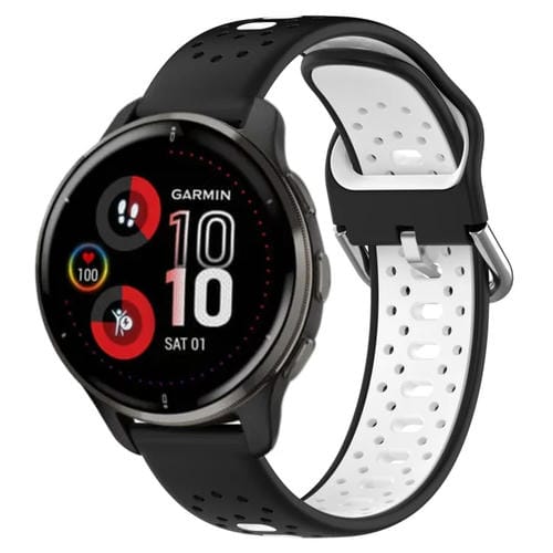 Banda de Reloj Garmin Venu 2 Plus 20mm Silicona Transpirable Dos Colores (Negro + Blanco)