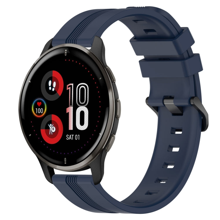 Correa de Reloj Garmin Venu 2 Plus 20mm Silicona con Rayas Cóncavas (Azul Marino)