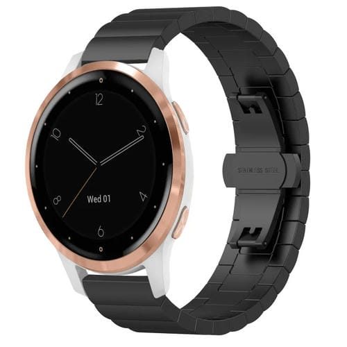 Correa de Reloj para Garmin Vivoactive 4S con Hebilla Mariposa de Acero Inoxidable (Negro)